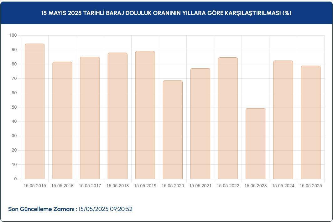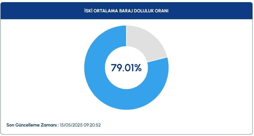 İstanbul baraj doluluk oranı 15 Mayıs bugün yüzde 79.01 olarak kaydedildi. Bir evvelki gün ise baraj doluluk oranı yüzde 79.02 olarak kaydedilmişti.