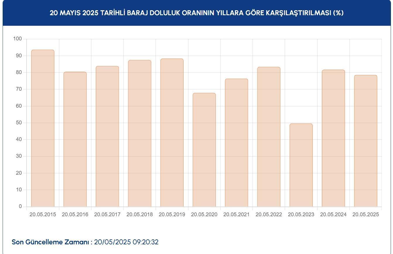 İstanbul 20 Mayıs baraj doluluk oranı geçtiğimiz yıl birebir gün 81,71 olarak kaydedilmişti.
