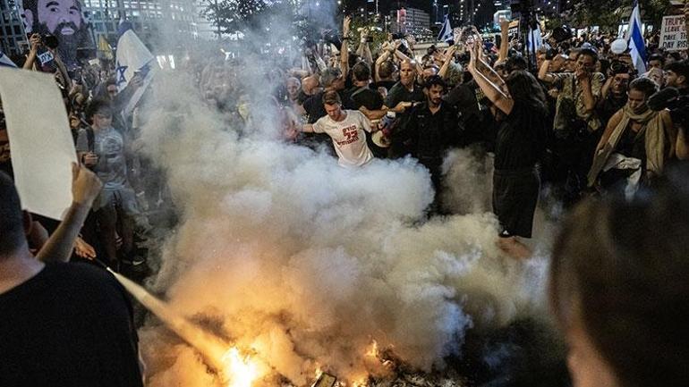 İsrail’in Tel Aviv kentinde toplanan yüzlerce kişi, Gazze’de ateşkesin sağlanması ve İsrailli esirlerin geri getirilmesi talebiyle şov düzenledi.