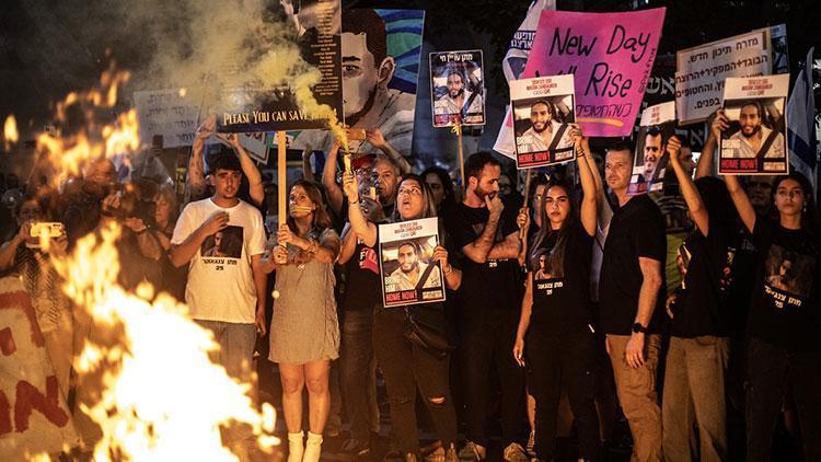 İsrail’in Tel Aviv kentinde toplanan yüzlerce kişi, Gazze’de ateşkesin sağlanması ve İsrailli esirlerin geri getirilmesi talebiyle şov düzenledi.