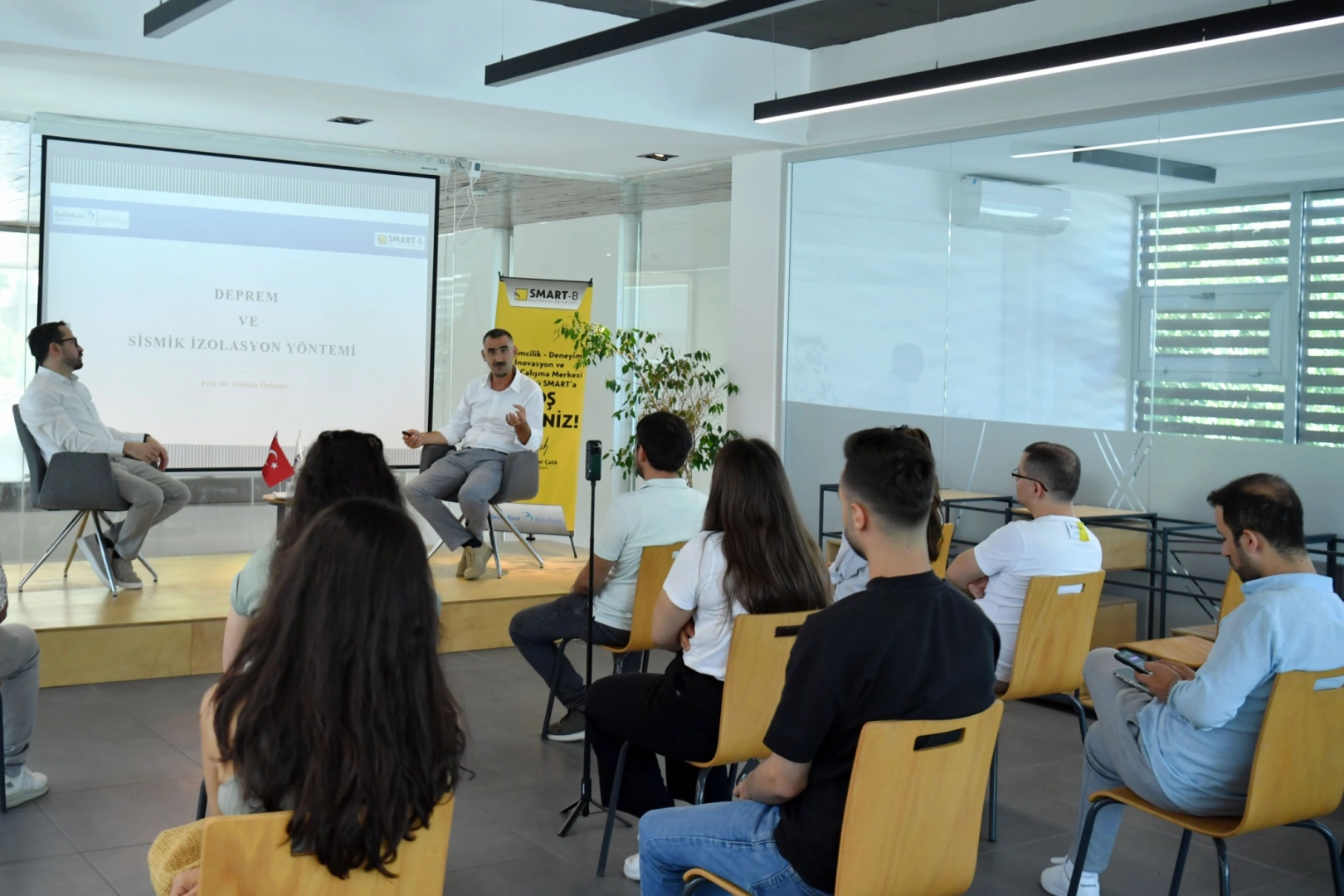 Beylikdüzü Belediyesi tarafından organize edilen Smart – Talks programları kapsamında, 17 Ağustos Marmara Depremi’nin yıl dönümünde Beylikdüzü Smart –B Gençlik Merkezi’nde , “Deprem ve Sismik İzolasyon Yöntemi” başlıklı bir söyleşi gerçekleştirildi.