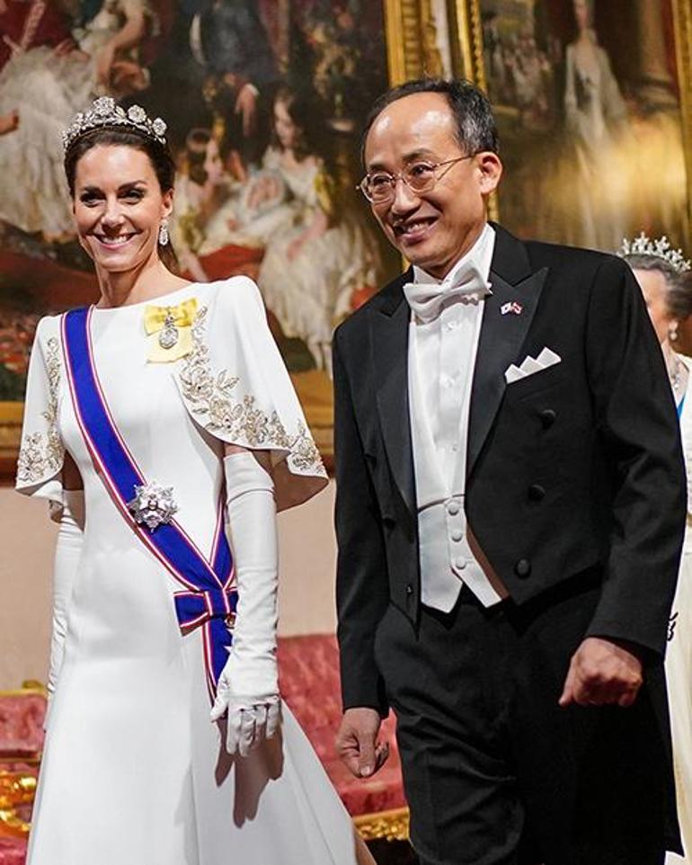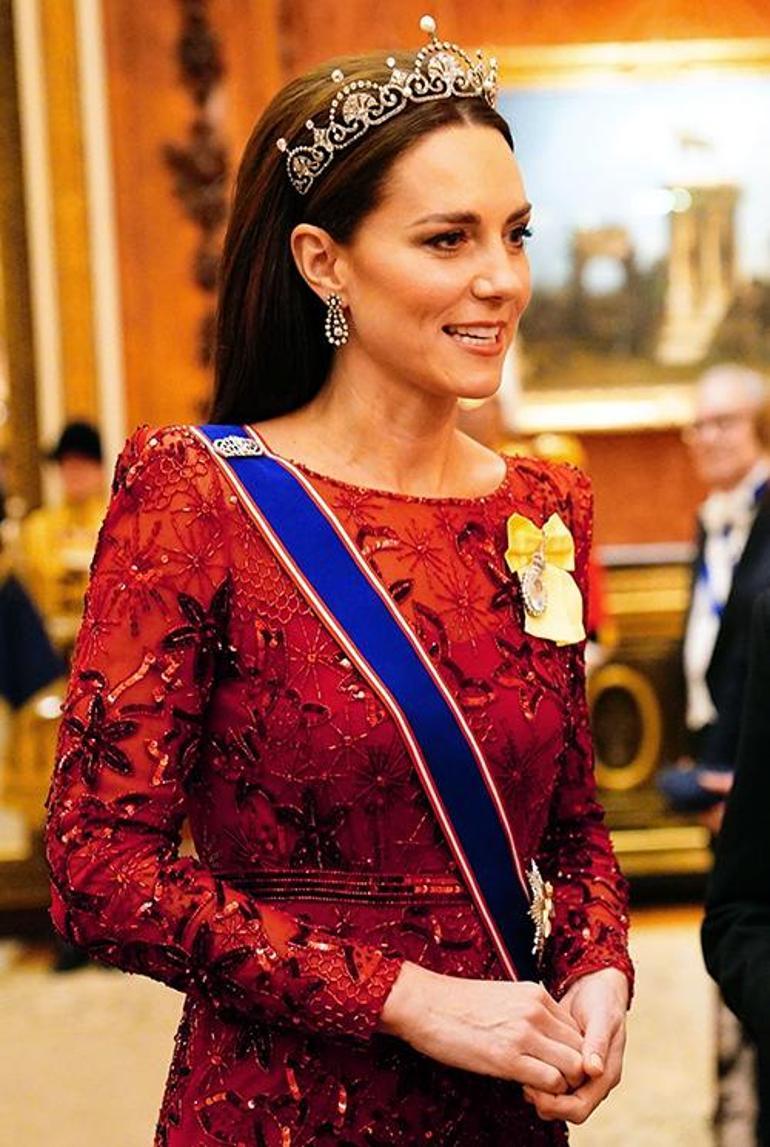 Güney Kore Devlet Lideri’nin geçen yıl Londra’ya yaptığı seyahat sırasında verilen resmi davette ise Kate bu defa neredeyse bir asırdır ortada görünmeyen bir tacı kullandı.