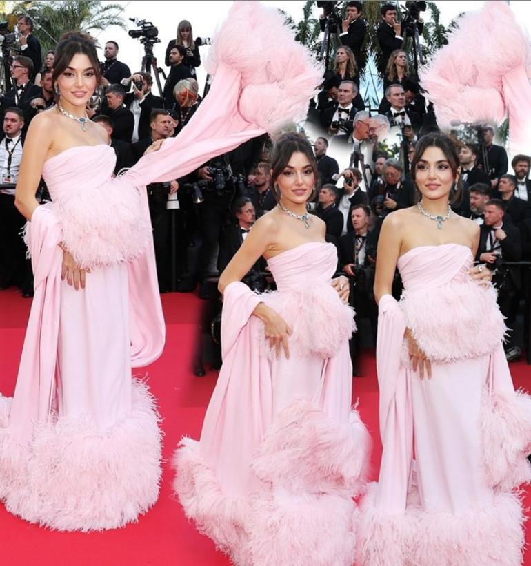 Kırmızı halıya pembe tonlarında, şık elbiseyle çıkan Erçel, tarz seçimiyle hem memleketler arası moda eleştirmenlerinden hem de hayranlarından tam not aldı.