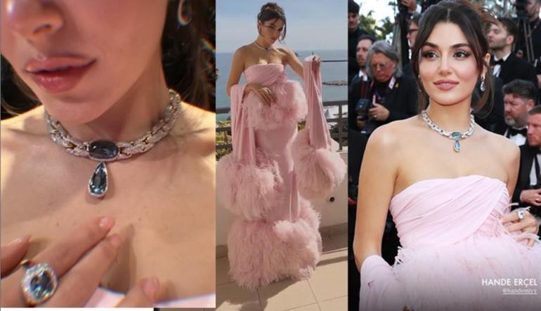 Hande Erçel göz alıcı takılarıyla da hayli dikkat cazipti…