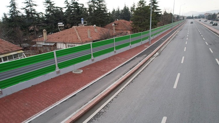 Konya Büyükşehir Belediye Başkanı Uğur İbrahim Altay, Çevresel Gürültü Eylem Planı kapsamında şehir merkezinde belirlenen hassas alanlarda gürültü engelleyici bariyer çalışmalarını bir bir hayata geçirdiklerini belirtti. Başkan Altay, “Daha önce Adana Çevre Yolu üzerinde bulunan Konya Adalet Sarayı yanında İLBANK hibesiyle 5,5 metre yüksekliğinde 236 metre uzunluğunda bir gürültü bariyeri yapmıştık. Şimdi de Büyükşehir olarak şehre kazandırdığımız ve önemli caddelerden biri haline gelen Abdülhamid Han Caddesi’nde yerleşim bölgelerinin bulunduğu alanda bariyer çalışmamızı tamamladık. 1,5 metre yüksekliğinde ve 384 metre uzunluğundaki gürültü bariyerinin maliyeti tamamı öz kaynaklardan sağlandı. Güncel bedelle 4 milyon liraya mal olan projenin hayırlı olmasını diliyorum” dedi.