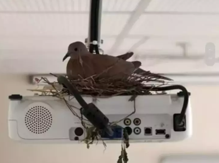 Prof. Dr. Ali Erdoğan’ın ders verdiği sırada projeksiyon makinesi üstünde dersi dinleyen davetsiz öğrencisi…