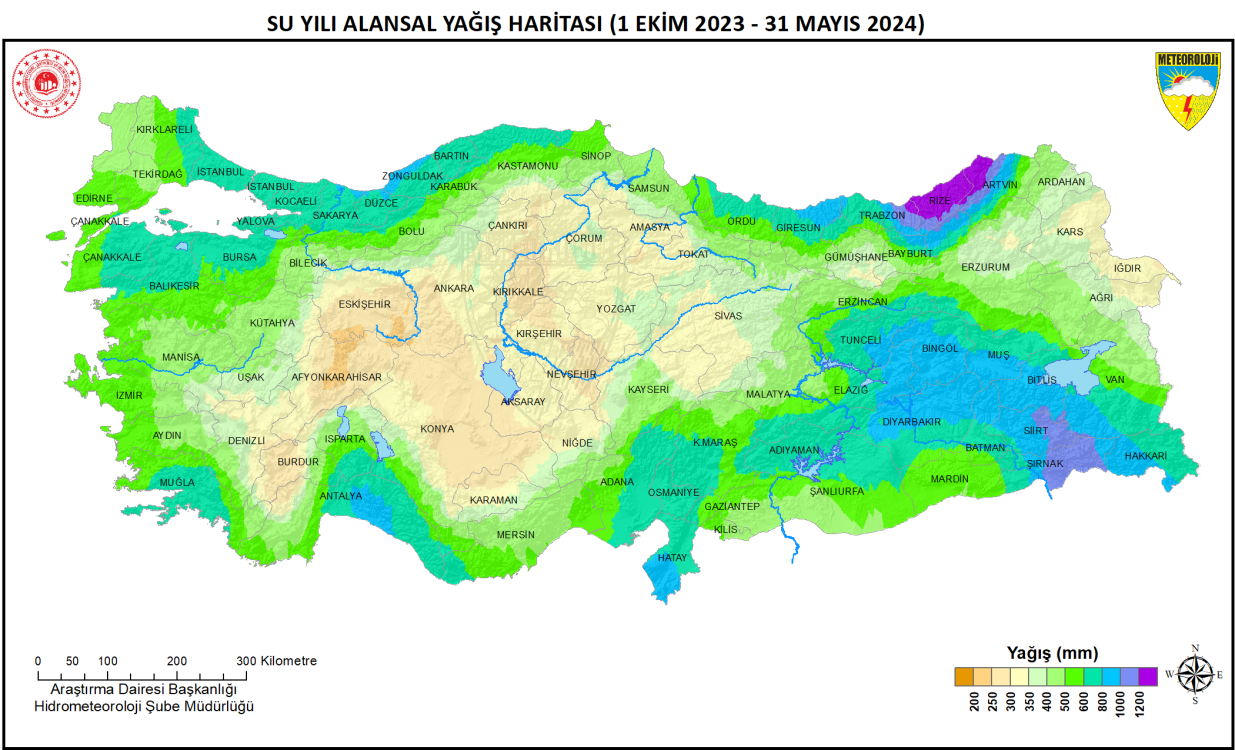 Bölgenin su yılı yağışı 313.1 mm, normali 328.6 mm ve 2023 su yılı yağışı 291.7 mm’dir. Yağışlarda normaline göre %5 azalma, 2023 su yılı yağışına göre %7 artma gerçekleşti.
