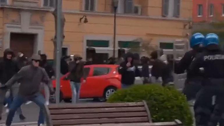 Bu sırada bir küme Lazio taraftarları polisle çatıştı. Polisin göz yaşartıcı gaz ve tazyikli su sıkarak müdahale ettiği olaylarda bazı taraftarlar da güvenlik güçlerine şişe, meşale ve etraftaki restoranın sandalyelerini attı. Olaylar esnasında 13 polisin yaralandığı bildirildi.