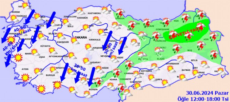 KUVVETLİ RÜZGAR UYARISI: Rüzgarın Marmara, Kuzey Ege kıyıları ve Akdeniz’in iç kesimleri ile İç Anadolu’nun güney ve doğusunda kuzeyli yönlerden yer yer kuvvetli (30-60 km/saat) olarak esmesi beklendiğinden yaşanabilecek olumsuzluklara karşı dikkatli ve tedbirli olunmalıdır.