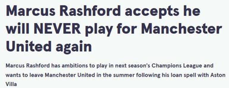 Mirror’da yer alan habere nazaran; Rashford Manchester United’a geri dönmeyecek. Aston Villa cephesi ise oyuncudan şad olmasına rağmen 40 milyon sterlinlik bonservisini karşılamak istemiyor.