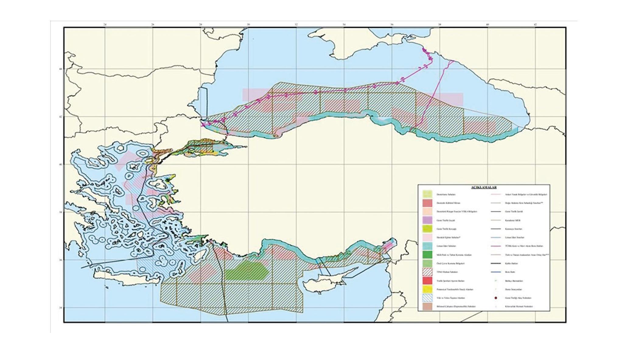 Türkiye, şimdi resmi olarak Deniz Mekansal Planlaması’nı kabul etmese de, son yıllarda bu alanda değerli ilerlemeler kaydedildi. Çeşitli kamu kurumları, üniversiteler, sivil toplum kuruluşları ve özel bölüm temsilcilerinin katkılarıyla Türkiye’de DMP’ye ait çok sayıda çalışma yürütülüyor. DMP haritası akademik bir çalışma çerçevesinde hazırlanmış olup, Türkiye Cumhuriyeti’nin resmi görüşünü yansıtmıyor.