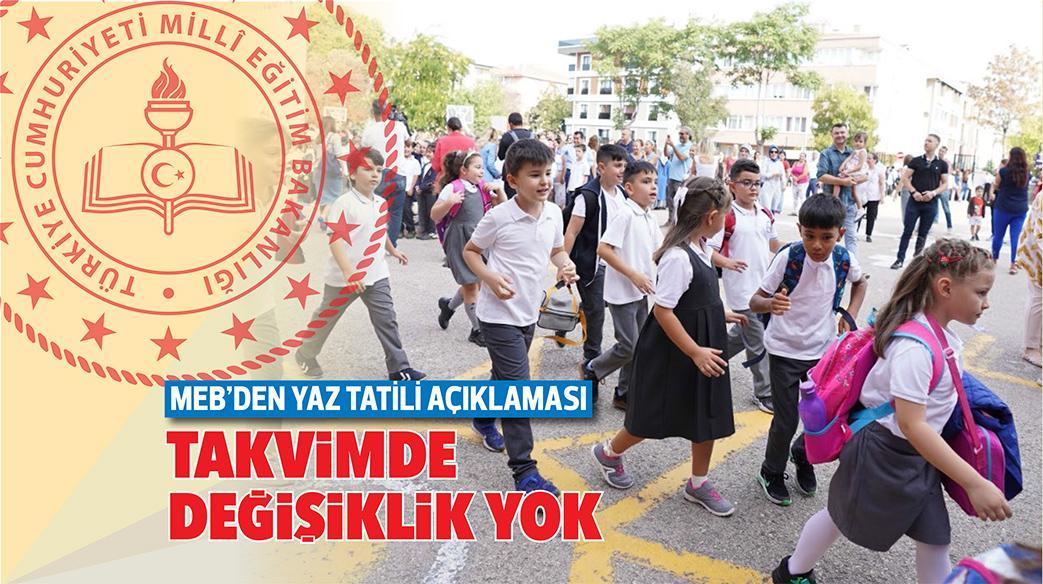 MEB’den yapılan açıklamada, “Kurban Bayramı nedeniyle yaz tatilinin öne alınacağı” tarafındaki haberlerin temelsiz olduğu vurgulanarak, 2024-2025 eğitim öğretim yılı resmi takvimin 28 Mayıs 2024’te kamuoyuyla paylaşıldığı ve sürecin bu takvime nazaran işlediği hatırlatıldı. Buna nazaran, 9 Eylül 2024’te başlayan eğitim-öğretim yılı 20 Haziran’da sona erecek. Bakanlıktan yapılan açıklamada, “Takvim internet sitesinde yayında olmasına karşın yapılan haberler ya özensizce ya da arka niyetlidir. Kaynağından araştırılmadan yahut kasıtlı olarak temelsiz tezler içeren palavra ve aldatıcı bilgilerle kamuoyunun gündemini meşgul eden; milyonlarca öğrenci, öğretmen ve velimizi yanlış yönlendiren bu tıp manipülatif haberlere prestij edilmemesi gerekiyor” denildi.