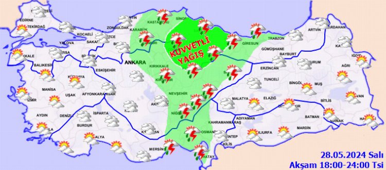 KUVVETLİ YAĞIŞ UYARISI: Yağışların; Batı Akdeniz’in iç kesimleri, İç Anadolu (Eskişehir hariç), Orta Karadeniz’in iç kesimleri, Kastamonu, Karabük ve Muğla çevreleri ile Denizli’nin doğu kesimleri, Adana ve Mersin’in kuzey kesimlerinde yerel olarak kuvvetli olması beklendiğinden yaşanabilecek, ani sel, su baskını, yıldırım, yerel dolu yağışı ve yağış anında kuvvetli rüzgar gibi olumsuzluklara karşı dikkatli ve tedbirli olunması gerekmektedir.