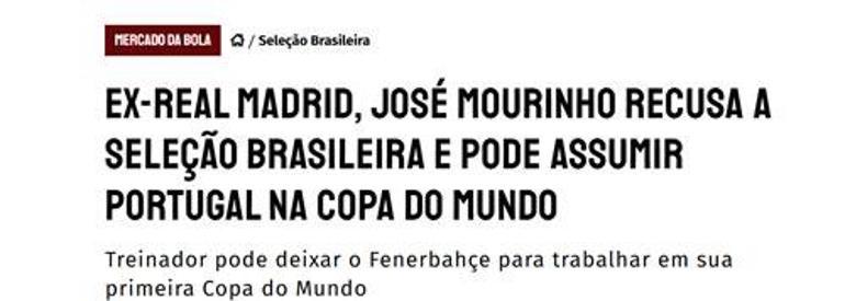 Bununla bir arada Güney Amerika basınında flaş bir habere yer verildi. Buna nazaran Mourinho, Brezilya Ulusal Takımı’nı reddetti.