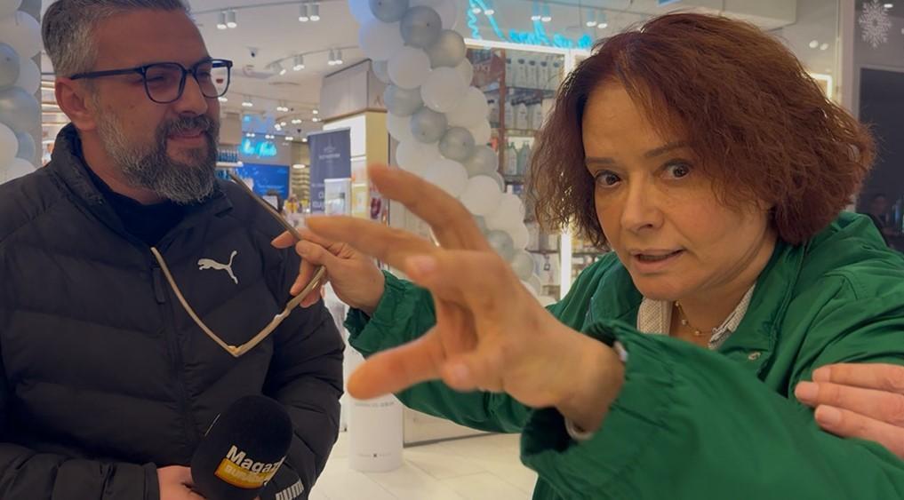 “Müjde Hanım biz gazeteciyiz, elimizde mikrofon var, sizi çekmek istedik” kelamlarını duymazdan gelen sanatçı, bir muhabirin yakasına yapıştı.