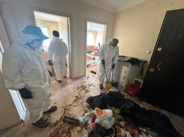 Kolluk kuvvetleri eşliğinde eve giren Nilüfer Belediyesi Temizlik İşleri Müdürlüğü ekipleri, içerideki manzara karşısında büyük şaşkınlık yaşadı. Ekipler, evin çöp olarak nitelendirilecek eşyalarla doldurulduğunu tespit etti.