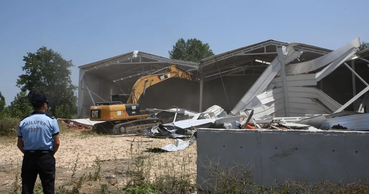 Nilüfer Belediyesi kaçak olarak inşa edilen yapılarla mücadelesini sürdürüyor. Yapı Kontrol Müdürlüğü’ne bağlı ekipler tarafından ruhsatsız yapılar yıkılıyor. Nilüfer Belediyesi yıkım ekipleri tarafından Tahtalı Mahallesi’nde verimli tarım alanları üzerine inşa edilen 1400 metrekare ve 800 metrekarelik iki yapı yerle bir edildi. Çevik kuvvet ve zabıta ekiplerinin de geniş güvenlik önlemleri aldığı yıkımda herhangi bir olumsuzluk yaşanmadı.