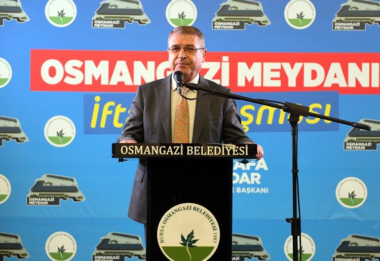 Esnafın her zaman yanında olduklarını ifade eden Osmangazi Belediye Başkanı Mustafa Dündar, “İftar sofrasında bir araya geldiğimiz Osmangazi Meydanı’nda Ramazan öncesi gerçekleştirdiğimiz 6 konserde 250 bin kişiyi bu meydanda buluşturduk. Ramazan ayı boyunca da bu meydanda toplumumuzun çeşitli kesimleriyle iftar sofralarında buluşuyoruz. Bu meydan 37 bin metre karelik bir alanı kapsıyor. Burası Bursa’nın merkezinde, yeraltında 4 kat 2 bin araçlık otopark, içinde nikah salonu, millet kıraathanesi, sosyal alanlarıyla yaşayan bir meydan olacak. Bu meydan aynı zamanda tarihi Bursa’nın yayalaşmasına katkı sağlayacak. Metro ve tramvay yanımızda aracıyla gelen aracını buradaki otoparka bırakarak şehrin farklı noktalarına yürüyerek de gidebilecek. Bu meydan bir bakıma şehir trafiğinin azalmasını sağlayacak.” dedi.