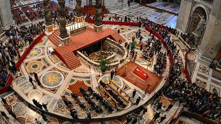 Vatikan’dan yapılan açıklamada, Aziz Petrus Bazilikası’nda bulunan Papa Francis’in naaşını 128.000’den fazla kişinin ziyaret ettiği belirtildi.