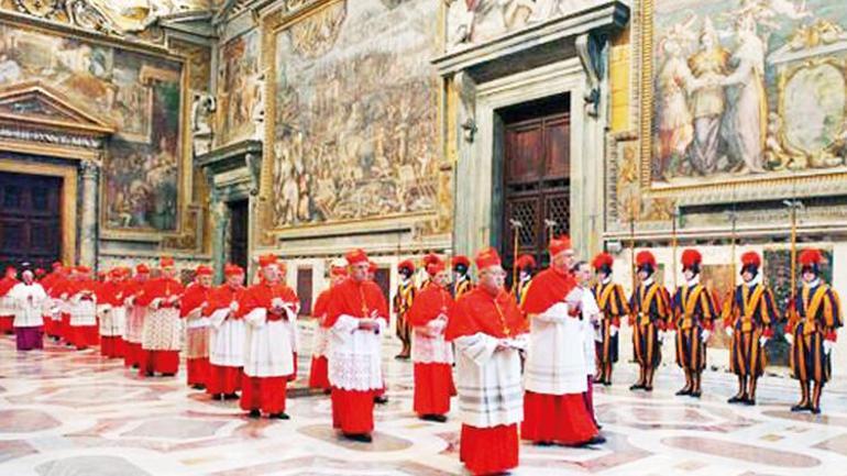 – ‘Konklav’ için 80 yaşın altındaki tüm kardinal seçmenler dünyanın dört bir yanından Vatikan’a, Sistine Şapeli’ne çağırılıyor. Şapelin kapıları kapatılıp dış dünyayla tüm bağlantı kesiliyor; telefonlar kaldırılıyor ve gazete, televizyon, mektup yahut iletiye müsaade verilmiyor.