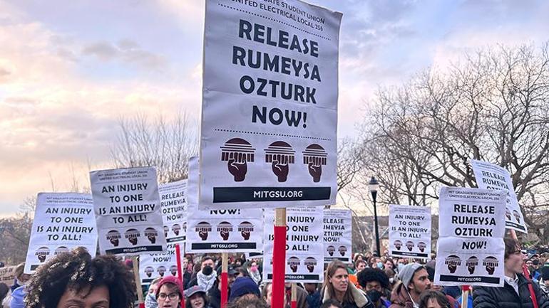 Massachusetts eyaletindeki Tufts Üniversitesinde doktora yapan Rümeysa Öztürk, 25 Mart akşamı arkadaşlarıyla iftara giderken yüzleri maskeli 6 ICE vazifelisi tarafından gözaltına alınmıştı.