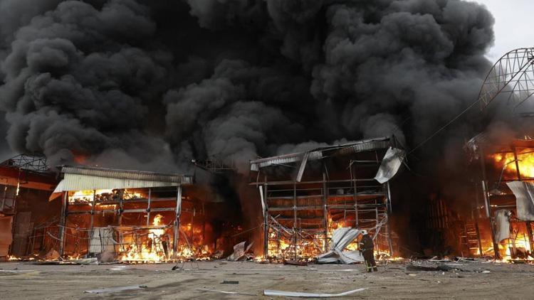 Harkov’a düzenlenen atakta, Barabashovo pazar yeri vurularak kullanılamaz geldi.