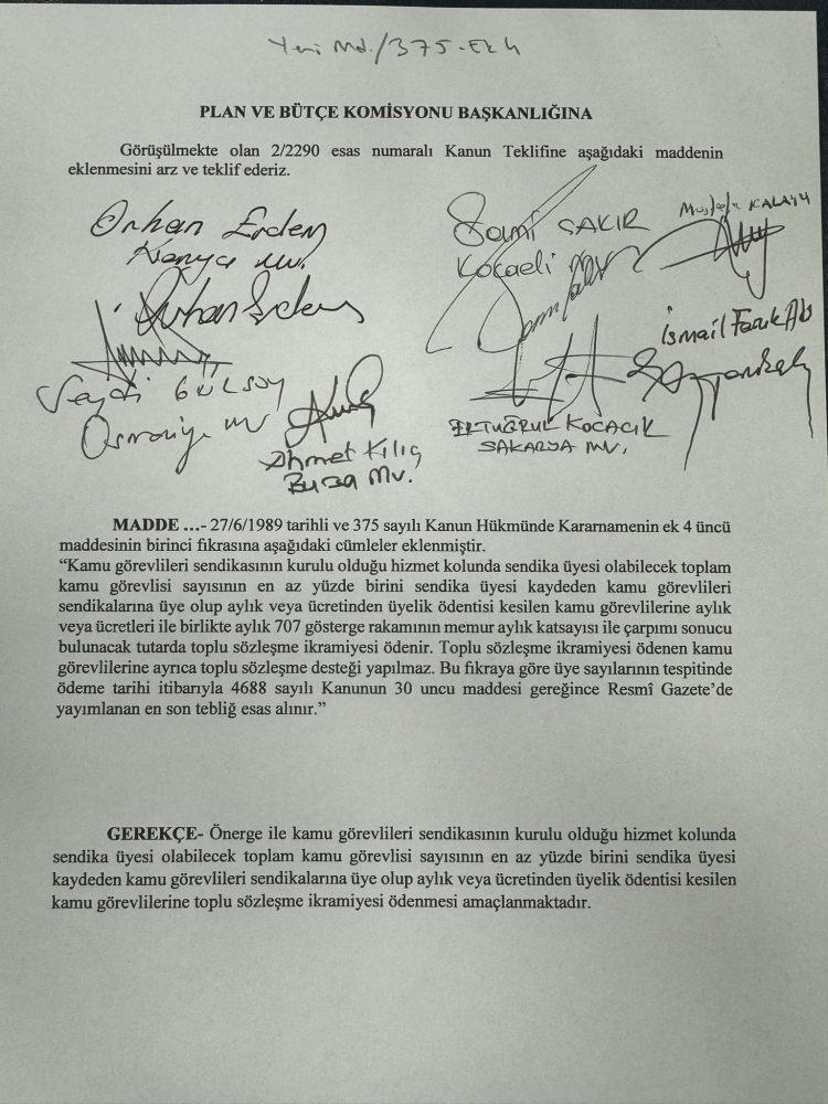 Danıştay’ın yüzde 1, AYM’nin yüzde 2 iptal kararına rağmen, yeniden yüzde 1 kararının, AYM’den döneceğinden kimsenin şüphesi olmamasına rağmen, yeni bir karmaşanın ve yeni mağduriyetlerin yaşanacağı alenen ortadayken, yüzde 1’i milletvekillerine sunan sendikacılar, yüzde 1’i imzalayarak teklif verdi.