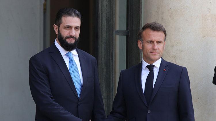 Fransa’yı ziyaret eden Şara, Fransa Cumhurbaşkanı Emmanuel Macron ile Elysee Sarayı’nda yaptığı görüşmenin akabinde ortak basın toplantısı düzenledi.