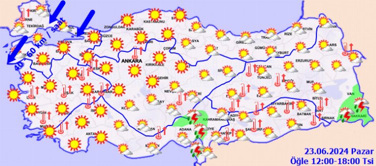 RÜZGAR: Genellikle kuzey, Doğu Akdeniz ve Güneydoğu Anadolu’nun batısında güney yönlerden hafif, ara sıra orta kuvvette, Marmara kuzeyli yönlerden kuvvetli (40-60 km/saat) olarak esmesi bekleniyor.