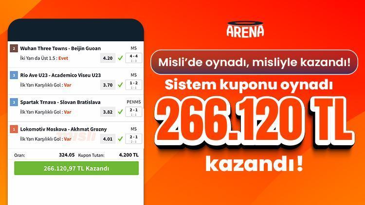 Misli üyesi, sistem kuponunda yazdığı 6 maçın 5’ini bilerek 266.120,97 TL kazandı ve bu kuponuyla Misli Arena’da günün “En Uygun 20 Kuponu” ortasında yer aldı.