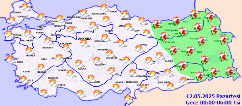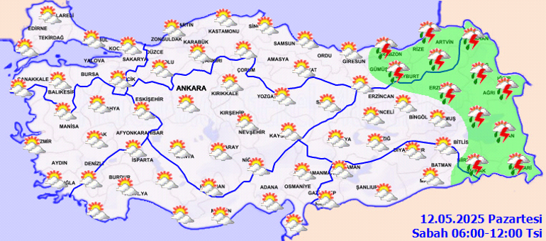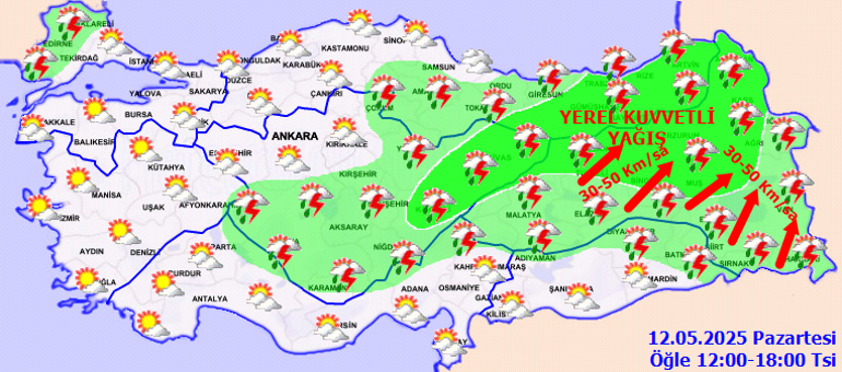Meteoroloji Genel Müdürlüğü tarafından yapılan kestirimlere nazaran, ülkemiz genelinin kesimli ve çok bulutlu, İç Anadolu’nun güney ve doğusu, Orta ve Doğu Karadeniz, Doğu Anadolu, Güneydoğu Anadolu’nun kuzey ve doğusu ile Edirne, Kırklareli ve Kahramanmaraş etraflarının sağanak ve gök gürültülü sağanak yağışlı geçeceği varsayım ediliyor. Yağışların; İç Anadolu’nun doğusu, Doğu Karadeniz, Doğu Anadolu’nun kuzeyi ile Tokat etraflarında lokal kuvvetli olması bekleniyor.