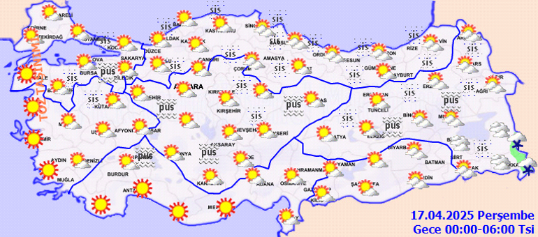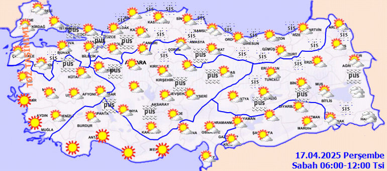 Meteoroloji Genel Müdürlüğü tarafından yapılan kestirimlere nazaran, ülkemizin kuzey ve doğu kesitlerinin modüllü ve yer yer çok bulutlu, Artvin, Bitlis ve Van etrafları ile Iğdır’ın, Ağrı’nın ve Hakkari’nin doğu bölümlerinin yağışlı, başka yerlerin az bulutlu ve açık geçeceği varsayım ediliyor. Yağışların ekseriyetle yağmur ve sağanak, Hakkari’nin doğu bölümlerinde karla karışık yağmur ve kar biçiminde olması bekleniyor. Gece ve sabah saatlerinde kuzey, iç ve doğu kısımlarda pus ve yer yer sis hadisesinin görüleceği kestirim ediliyor. Trakya ile Kuzey Ege kıyılarında toz taşınımı bekleniyor.