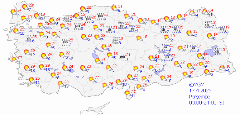 Az bulutlu ve açık geçeceği varsayım ediliyor. Gece ve sabah saatlerinde pus ve yer yer sis bekleniyor.