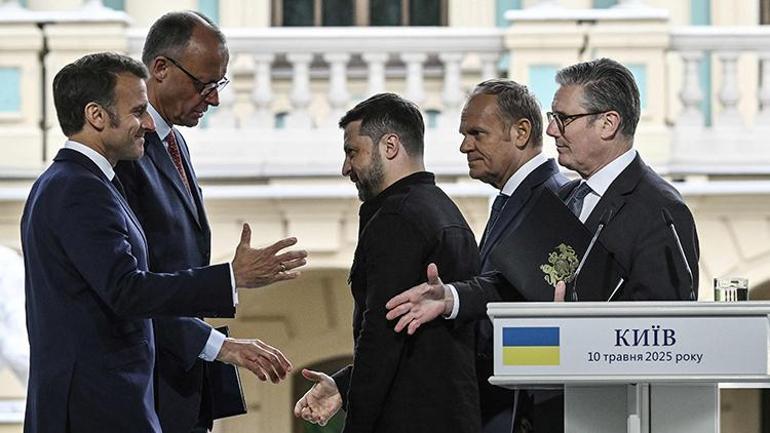 İngiltere Başbakanı Keir Starmer, Almanya Başkanı Friedrich Merz ve öteki Avrupalı önderler, Kiev’de Ukrayna Devlet Başkanı Volodimir Zelenski ile bir ortaya geldi. Dokuz saat süren görüşmelerin akabinde yapılan açıklamada, Putin’in “şart öne sürmeden ateşkesi kabul etmesi ve kalıcı barış müzakerelerine başlaması” gerektiği vurgulandı.