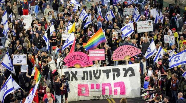 İsrail Başbakanı Binyamin Netanyahu’nun iç istihbarat teşkilatı Şin-Bet (Şabak) Yöneticisi Ronen Bar ve İsrail Başsavcısı Gali Baharav-Miara’yı misyondan alma eforlarına karşı çıkan ve derhal ateşkes ve esir takası mutabakatı talep eden binlerce İsrailli başşehir Tel Aviv’de protesto gösterisi düzenledi. Şovların odağındaki başşehir Tel Aviv’deki Begin Caddesi ve Habima Meydanı’nda binlere protestocu, sokakları doldurdu.