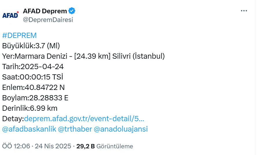 SON SARSINTILAR ANLIK – CANLI KANDİLLİ VE AFAD 24 NİSAN || İstanbul güne artçı zelzelelerle uyandı! Son sarsıntı nerede ne vakit kaç büyüklüğünde oldu?