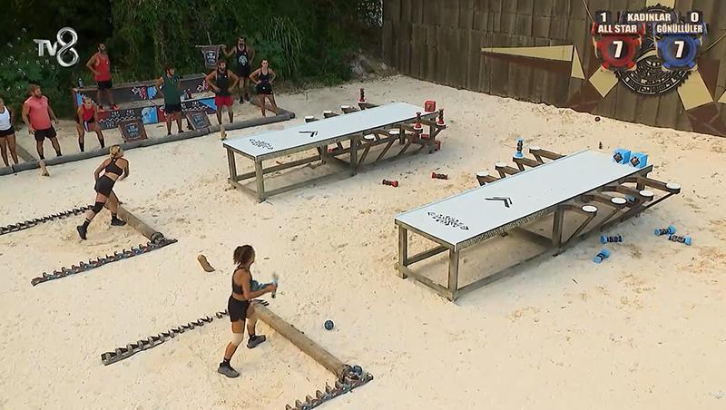Kıran kırana geçen uğraş sonrası Survivor’da haftanın 1. dokunulmazlık oyununu Sema’nın Pınar’a karşı aldığı sayı ile All Star kadrosu 8-7 skorla kazandı. Böylelikle kırmızı grup Türkiye mükafatı için tekrar parkura çıktı.
