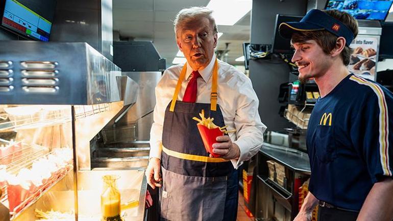2024 seçim kampanyasında Pensilvanya’daki bir McDonald’s şubesinde kızartma yapan Trump, burada çalışanlarla sohbet etmişti. Feasterville-Trevose şubesinde “Herkese merhaba. McDonald’s’taki birinci günüm, iş arıyorum” diyerek espri yapan ABD Başkanı, müşterilere servis de yapmıştı.