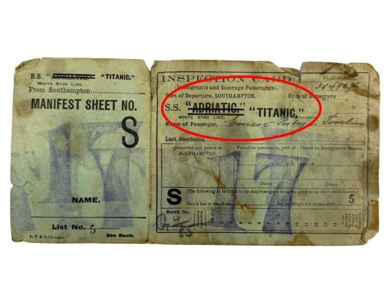 Yaşanan bu değişiklik Tomlin’in göç sıhhat dokümanına de yansımıştı. Tomlin’in sıhhat dokümanında de ADRIATIC sözünün üstünün iki defa çizildiği ve yerine TITANIC yazıldığı net bir biçimde görülebiliyordu.