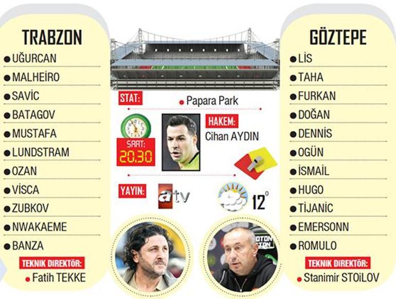 Ziraat Türkiye Kupası yarı finalinde Trabzonspor ile Göztepe bugün Papara Park’ta karşı karşıya gelecek.