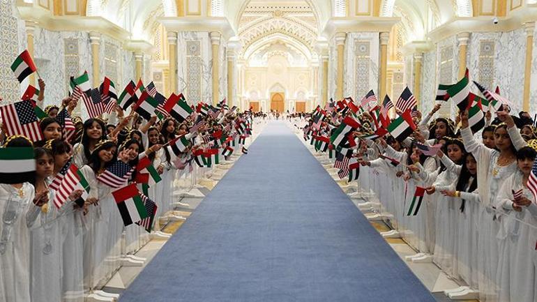 Trump, yanındaki basın mensuplarına “Bayıldım!” diyerek karşılamadan etkilendiğini söyledi. BAE yetkilileri, karşılama sırasında Trump’a altın işlemeli bir kolye takdim etti. ABD Başkanı, Orta Doğu turunun son durağı olan Abu Dabi’de başkanlık sarayında düzenlenen resmi yemeğe katıldı. BAE Devlet Başkanı Şeyh Muhammed bin Zayid El Nahyan’ın mesken sahipliği yaptığı aktiflikte, iki ülke ortasındaki ekonomik iş birlikleri ele alındı.