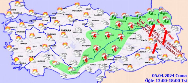Yapılan son değerlendirmelere göre Türkiye’nin kuzey, iç ve doğu kesimlerinin parçalı ve yer yer çok bulutlu, Akdeniz’in Toroslar mevkii, İç Anadolu’nun doğusu, Orta ve Doğu Karadeniz, Doğu Anadolu’nun batısı ile Sinop çevrelerinin sağanak ve yer yer gök gürültülü sağanak yağışlı, Doğu Anadolu’nun kuzeydoğusunun yükseklerinin karla karışık yağmurlu geçeceği tahmin edildi.