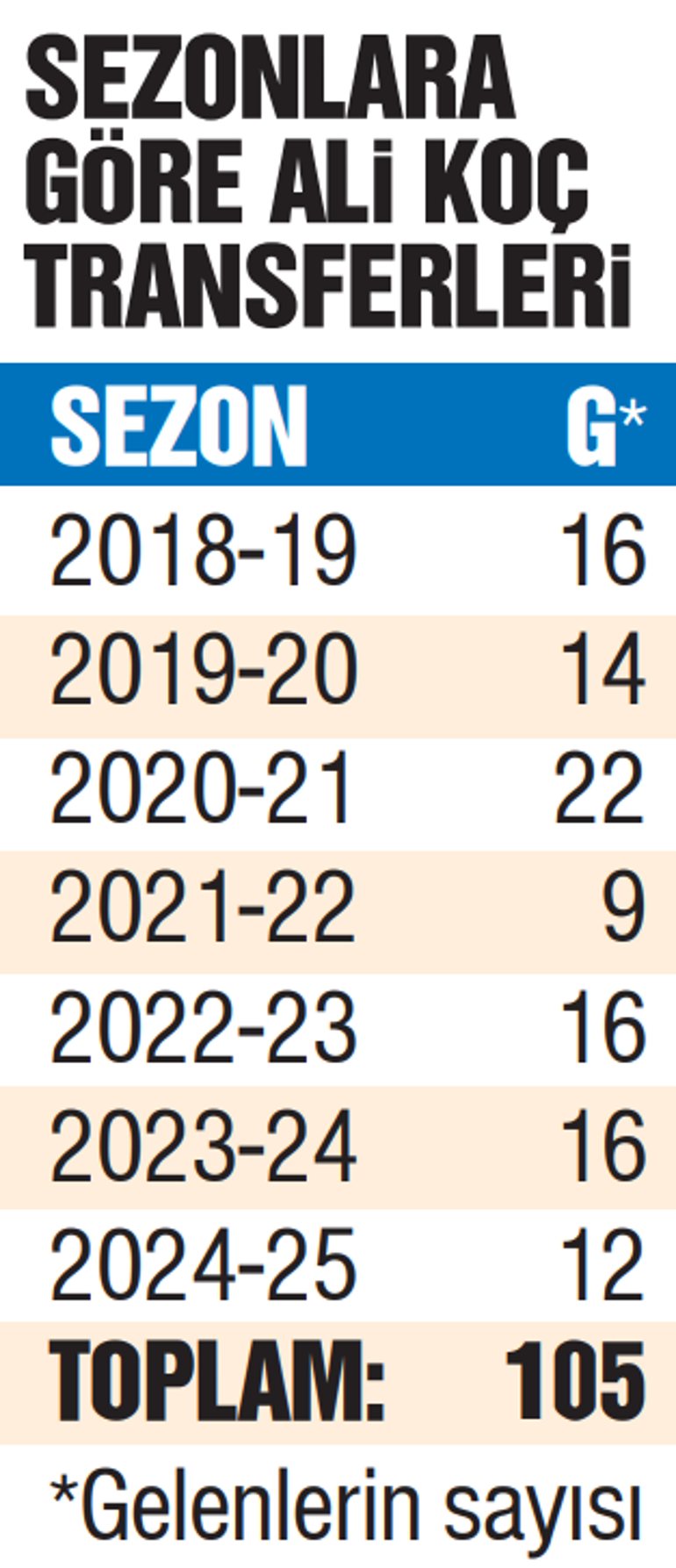 · 7’si yaz, 7’si kış 14 transfer devrinde 105 futbolcu aldı. Bu oyuncuların 65’i yabancı, 40’ı yerli isimlerden oluştu.