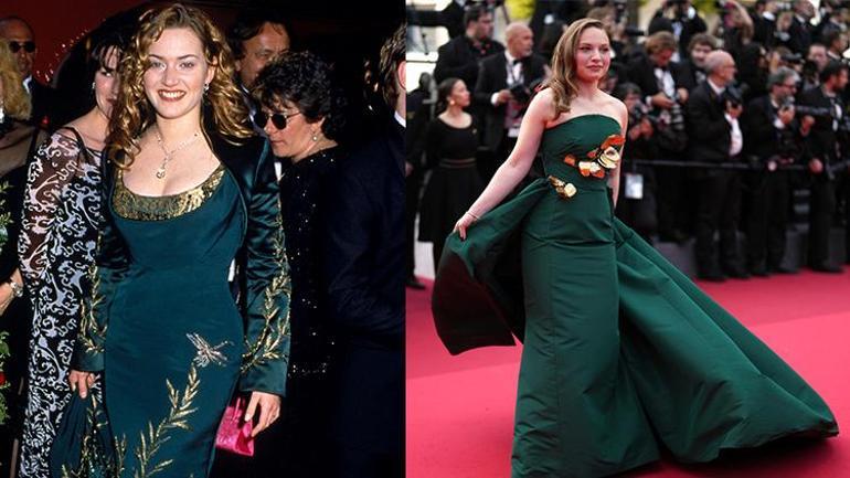 Cannes kırmızı halısında yeşil elbisesiyle sükse yapan Mia Threapleton annesi Kate Winslet’in tıpkı onun üzere genç bir yıldız adayıyken, 1998’de Oscar merasimine giderken giydiği yeşil elbiseyi ve o halini akıllara getirdi.