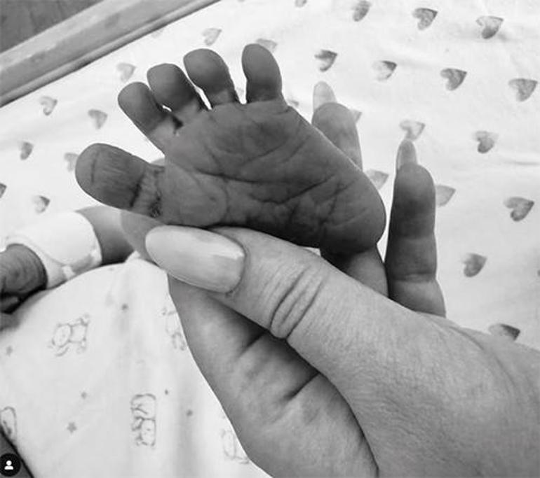 Genç anne, oğlunun yüzünü paylaşmak yerine birçok ünlünün yaptığı üzere minik ayağının bir fotoğrafına yer verdi.