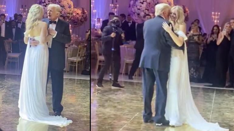 Tiffany Trump ve Michael Boulos, resmen karı-koca ilan edildikten sonra birinci danslarını Toploaders’ın Dancing In The Moonlight isimli müziğiyle yaptı. Sonra da sıra Trump ile kızının dansına geldi.