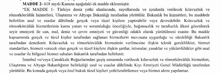 Bugünkü Resmi Gazete’de yayımlanan 618 Sayılı Kanundaki düzenleme ile İstanbul ve Çanakkale boğazlarında verilen Kılavuzluk ve Römorkörcülük hizmetlerinin Kıyı Emniyeti Genel Müdürlüğü’nce verileceği, yetkilendirme veya hizmet alımı yapılamayacağı artık Kanuni bir düzenleme olarak yasalaştı.