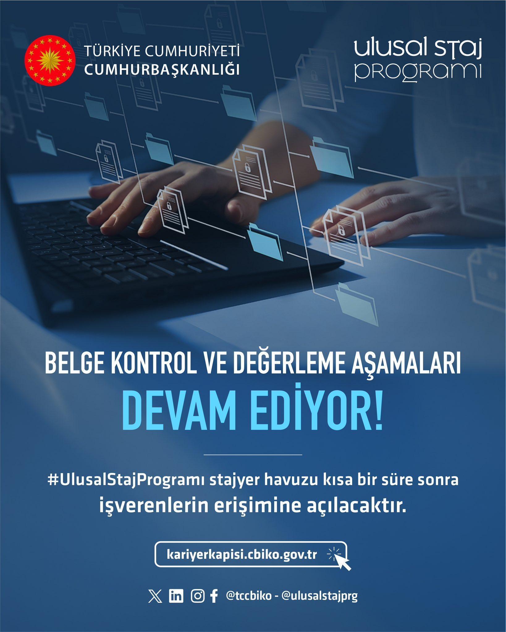 “Ulusal Staj Programı müracaatları 23 Aralık 2024 tarihinde açılmış ve 10 Mart 2025 tarihinde sona ermiştir. Öğrencilerin müracaat formuna yüklediği bilgi/belgeler ilgili kurumlarca denetim edilmiş ve değerleme süreci başlatılmıştır.