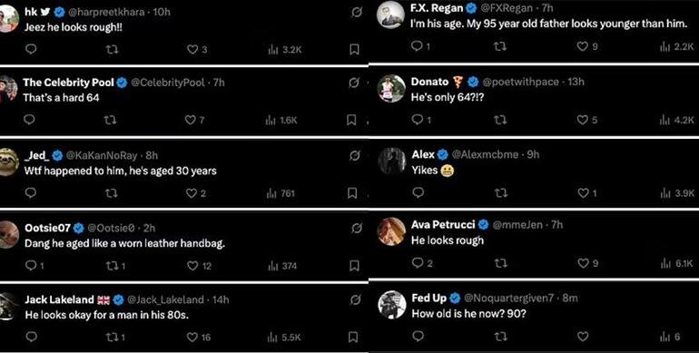 Hayranları bu durumu fark edip toplumsal medyadan sayısız paylaşım yaptı. Bazıları Sean Penn’in 64 yaşında olmasına karşın bu kadar makûs ve bakımsız görünmesini eleştirdi, kimi “Bu adam kaç yaşında 90 mı?” diye sordu bazıları de “Benim 90 yaşındaki babam ondan daha genç görünüyor” diye yorum yaptı.