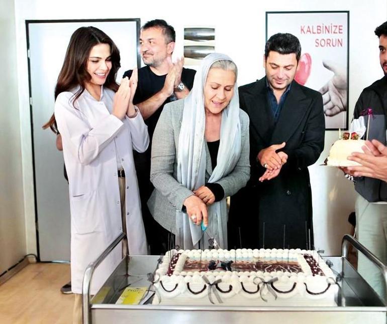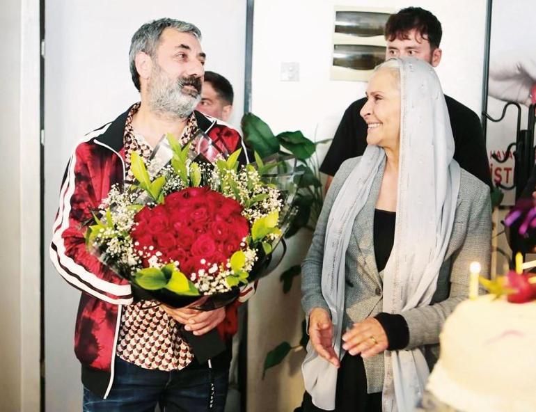 Rol arkadaşları, Nazmi Kırık’ı sette çiçek ve pastalarla karşıladı.
